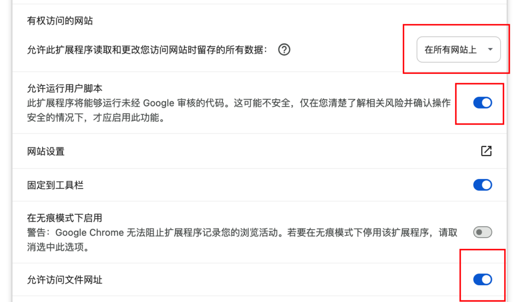 当你已经完成安装了篡改猴脚本,请打开以下选项确保安装油猴插件能正常使用。
